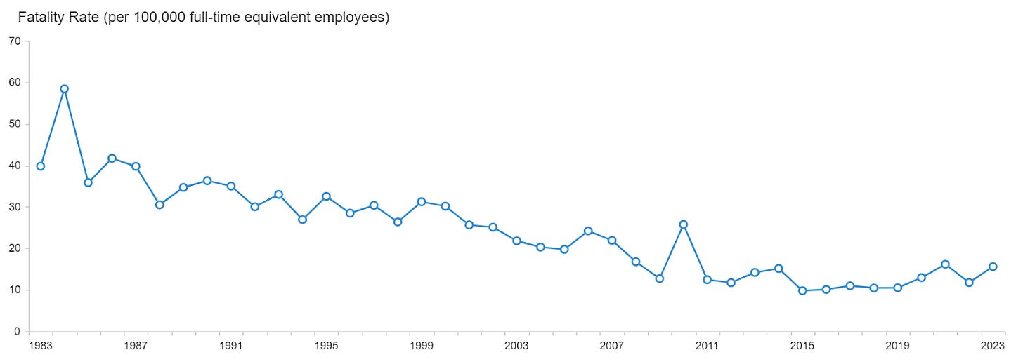 Miners will tell you that safety regulations are written in blood. Many point to the Sunshine mine disaster in 1972 that saw 91 lives lost as the final straw that triggered modern day reforms. At the head of these safety reforms stand America’s industrial labor unions, which themselves provide another bulwark of accountability relative to what workers a century ago or elsewhere in the world could count on. Lessons learned from past tragedies have sublimated into lives saved. In the early 1980s, industry saw fatality rates in the range of 40 deaths for every 100,000 miners. While even a single death remains too many, fatality rates have dropped dramatically since regulations took hold and since safety consciousness spread throughout worker culture, with industry having reduced fatality rates to 10 deaths for every 100,000 miners.