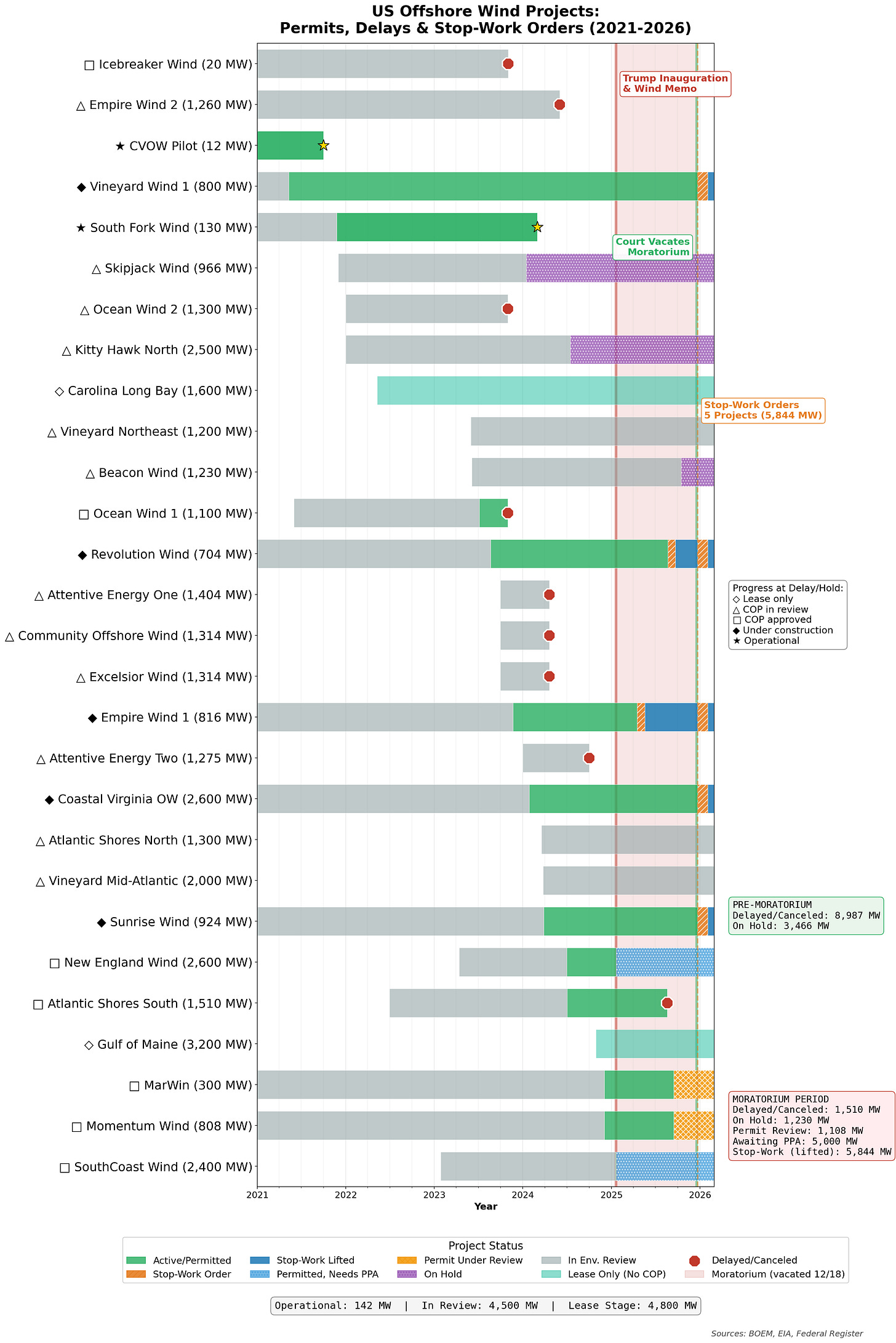 In the short time since, the courts have reversed the stop-work orders for all five affected wind farms. But the damage was done, and Democrats have not (yet) resumed permitting negotiations.