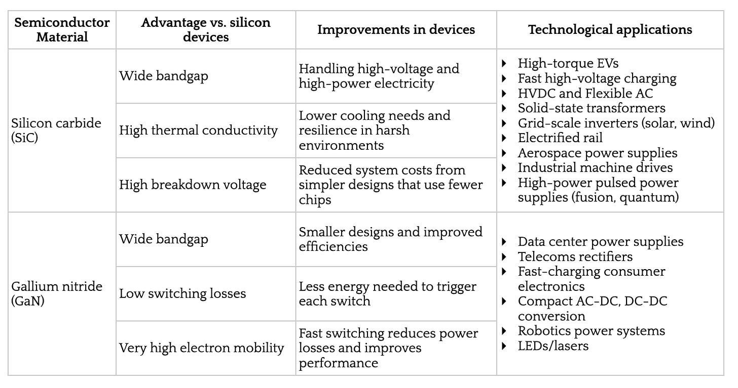 SiC and GaN have myriad uses in other transformative technologies from fusion. They will, in a sense, be the materials that underpin the “electro-industrial tech stack 2.0” as they become the gold standard in the next wave of electronics: self-driving cars, automated industrial facilities, 6G Internet, HVDC transmission lines, data center and EV power electronics. The list goes on and on, extending even to fusion.